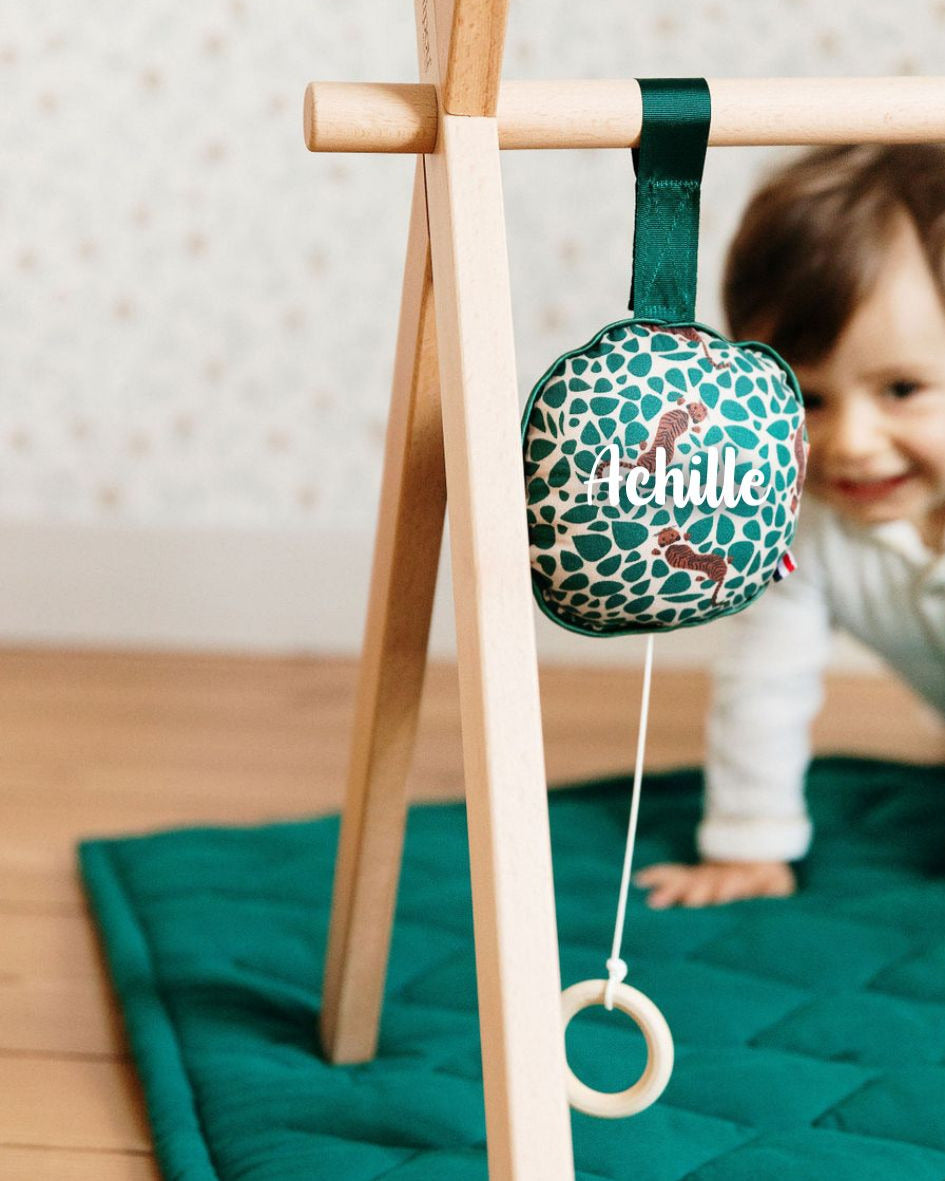 L’arche d’éveil en bois de hêtre est vendue avec quatre accessoires d'arche fabriqués en France : un coussin musical personnalisable et mixte, des clochettes légères, un nuage tout doux et un jouet pouët-pouët. Vous pouvez choisir la berceuse culte qui accompagne le coussin musical (Harry Potter, Dirty Dancing, La Boum…), pour une expérience apaisante et personnalisée qui ravira bébé et parents.